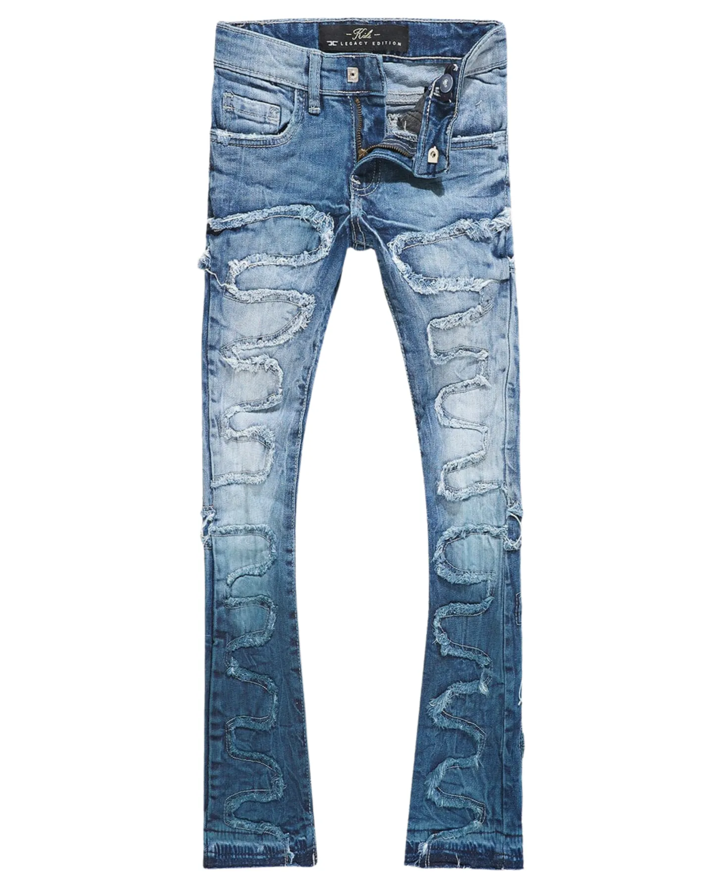 - Extended length flare pant for maximum stacks