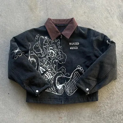 Retro contrast anime print zip-up jacket