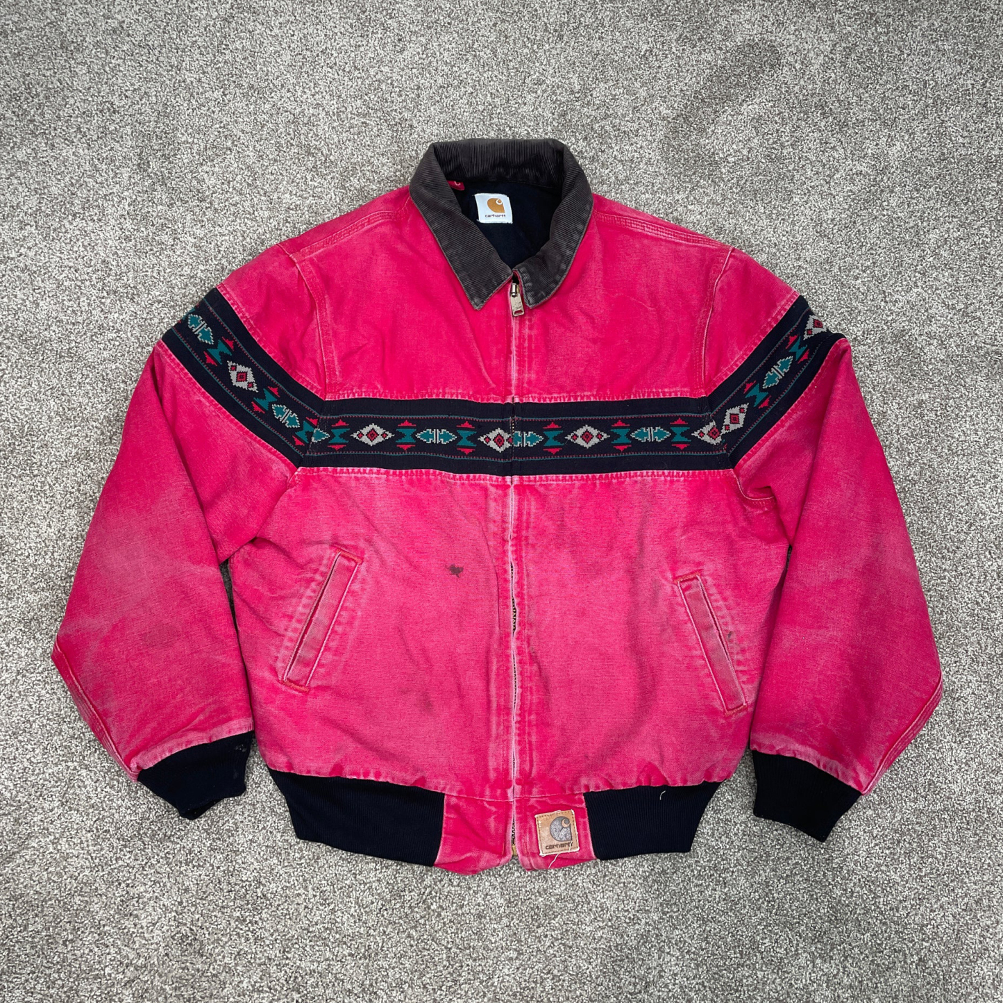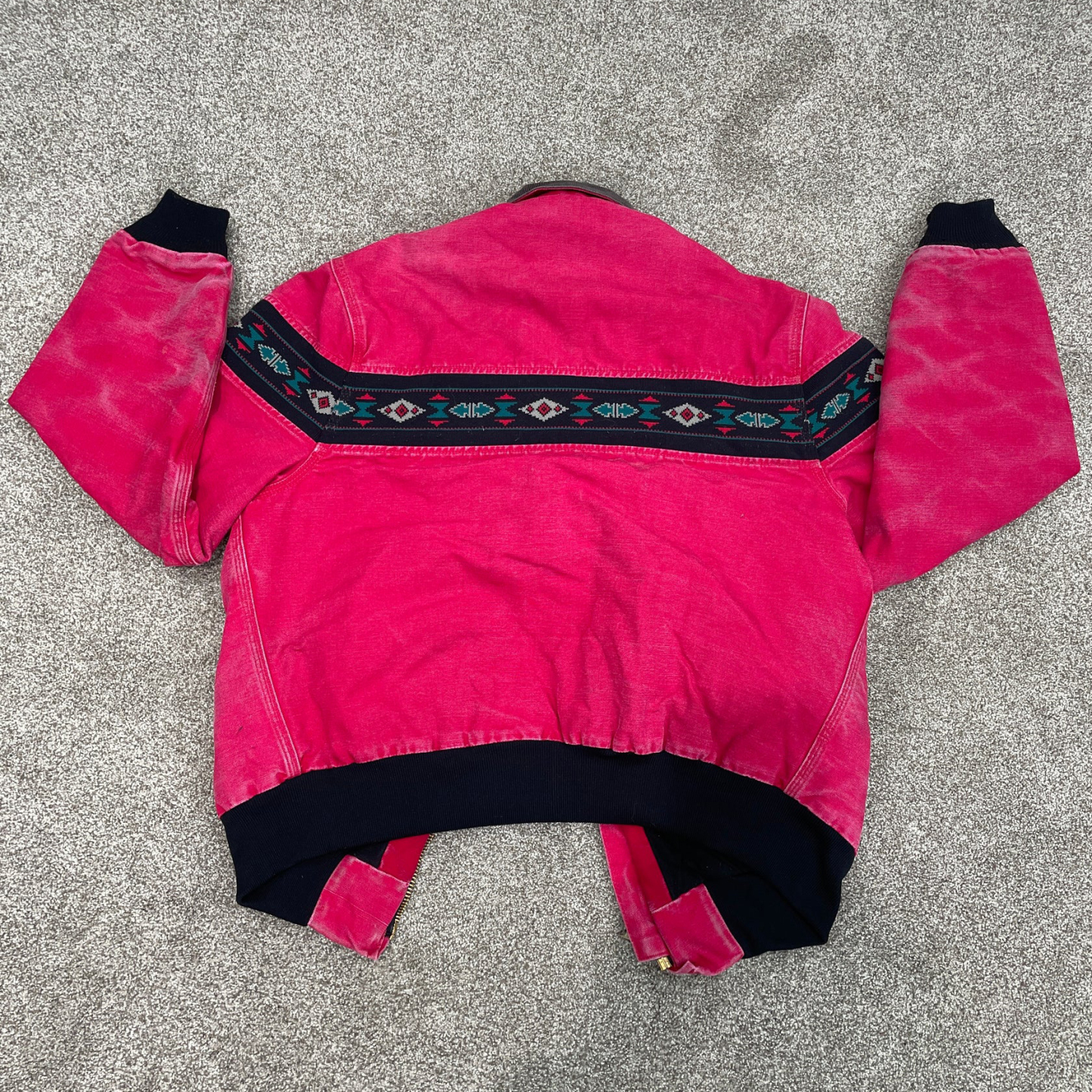 Retro contrast ethnic style zipper lapel tie lined jacket