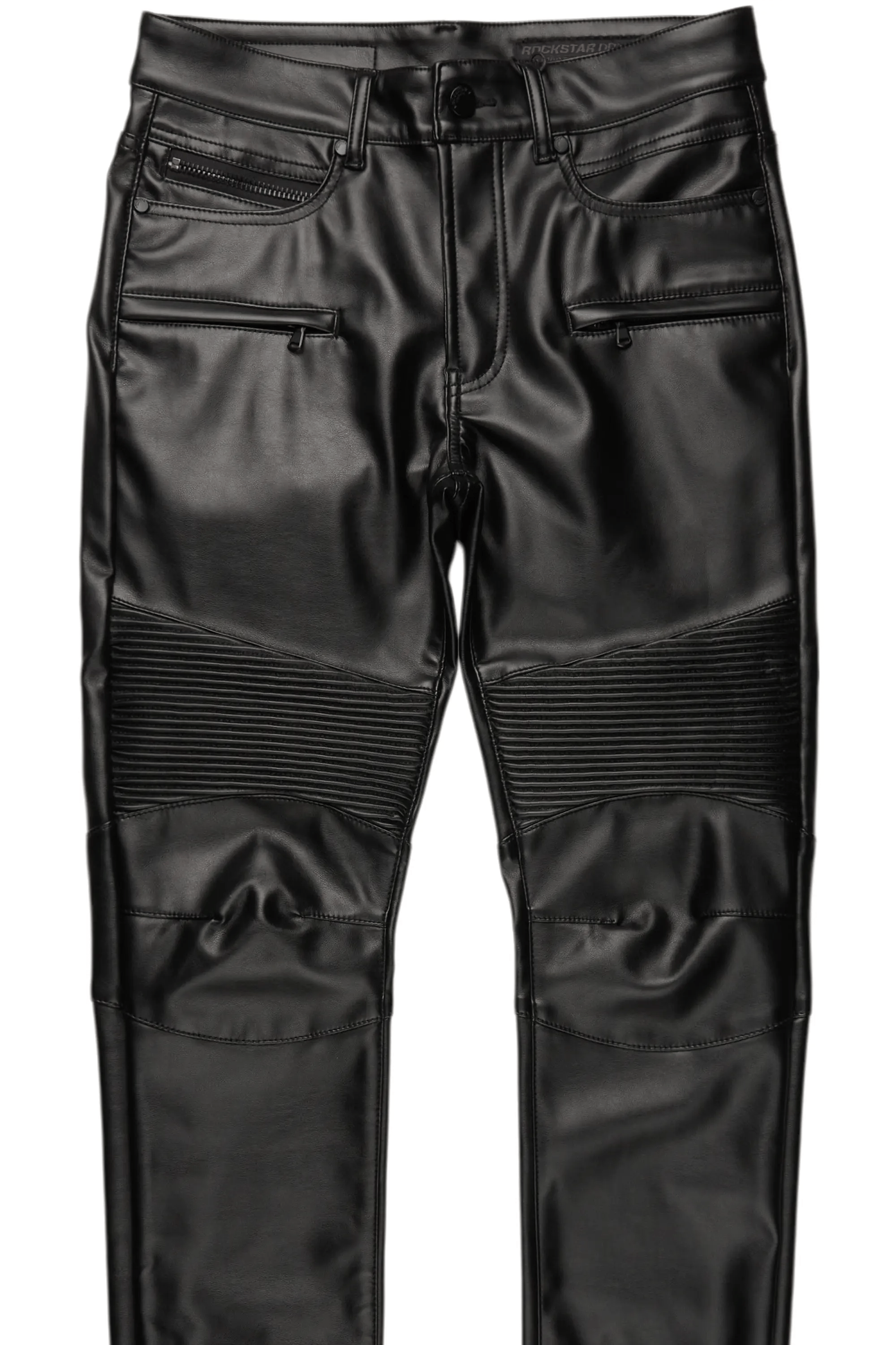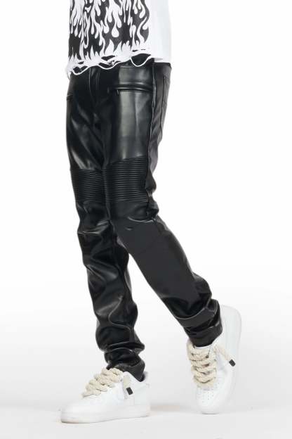 Richh Black PU Biker Jean