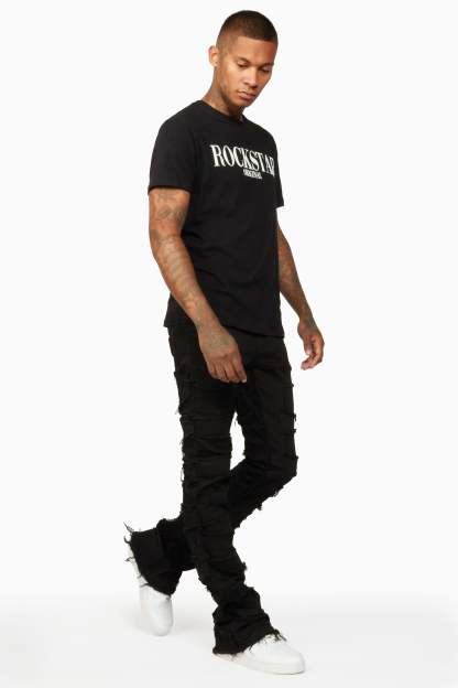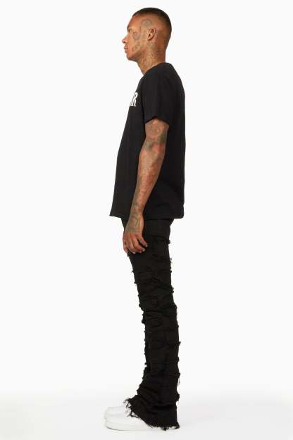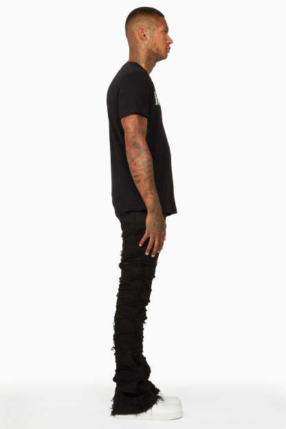 Shake Black Stacked Flare Jean