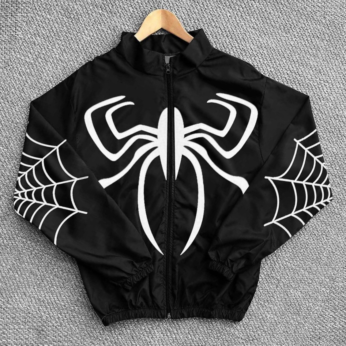 Spider Print Long Sleeve Zipper Design Sports Outdoor Trendy Jacket