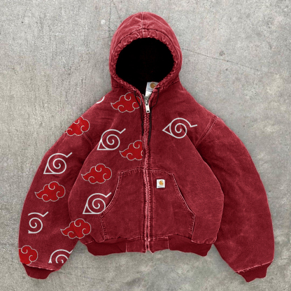 Street Anime Lucky Cloud Pattern Zipper Thickened Long Sleeve Jacket