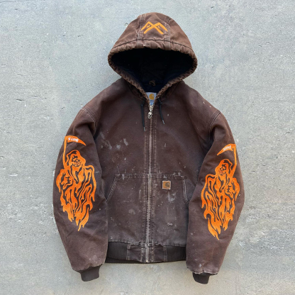 Street Retro Skull Zipper Long Sleeve Thickened Jacket