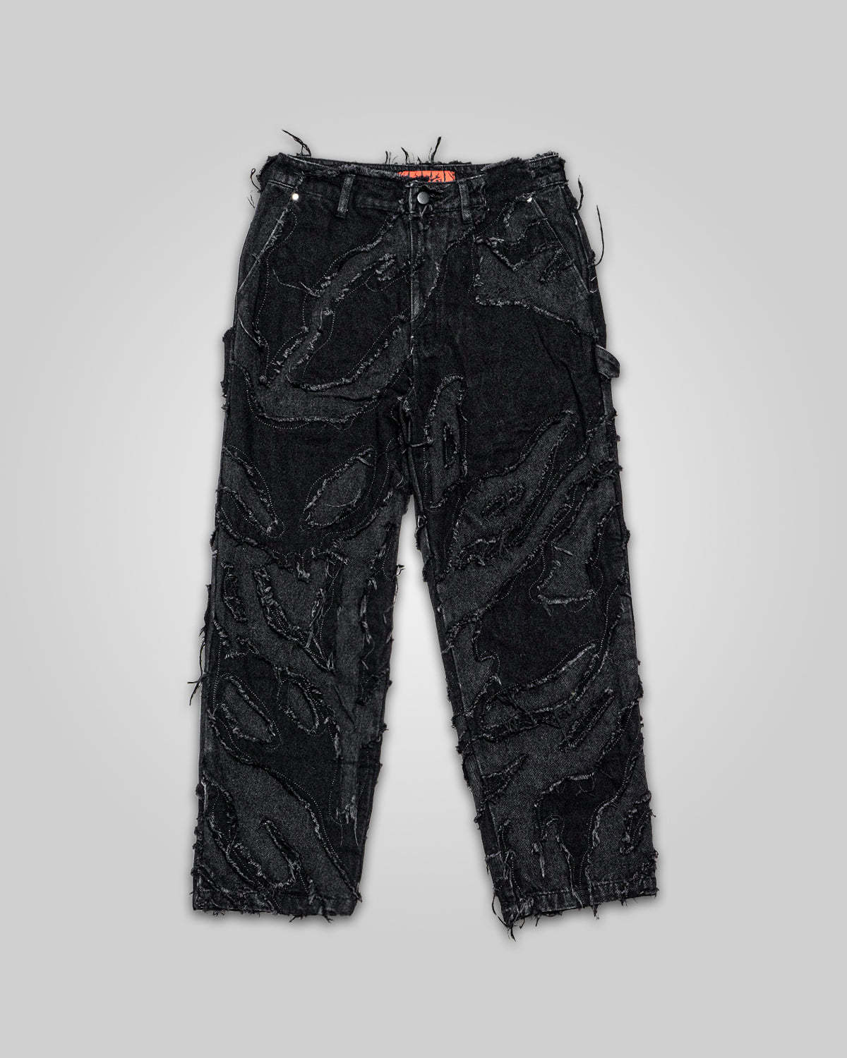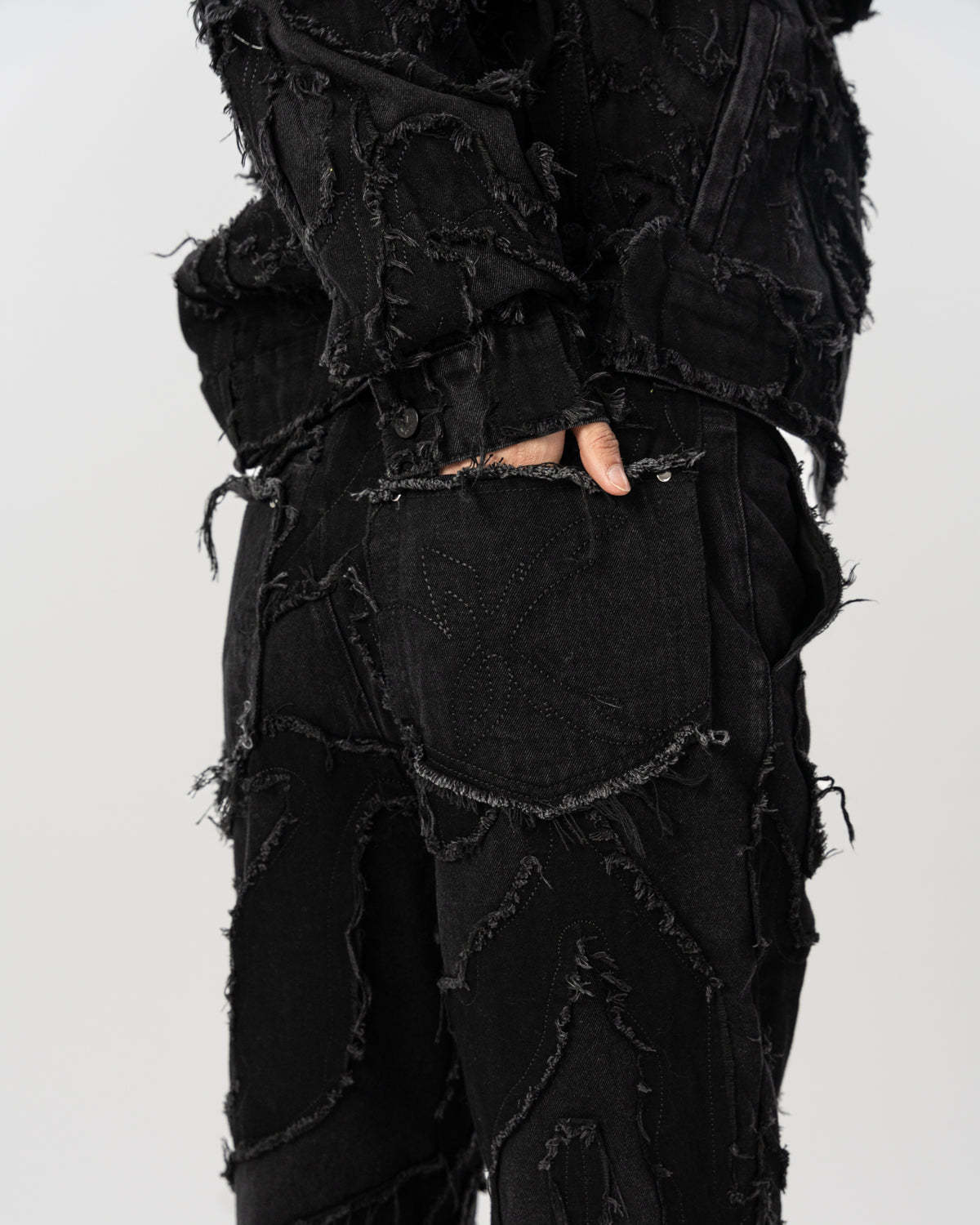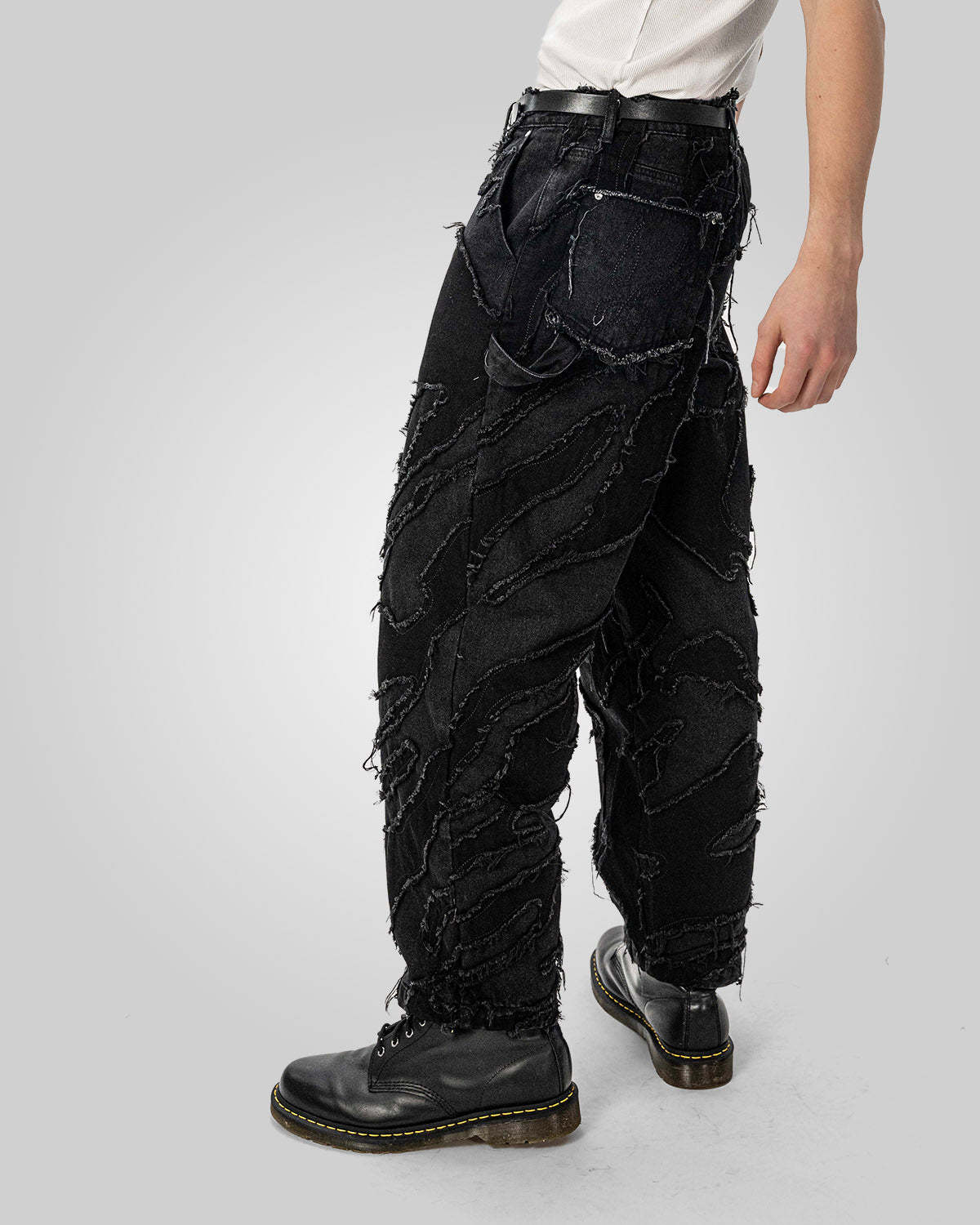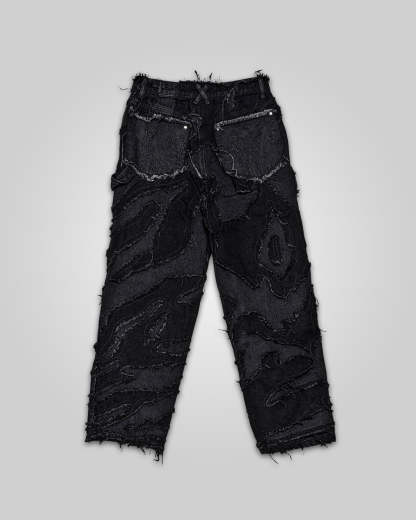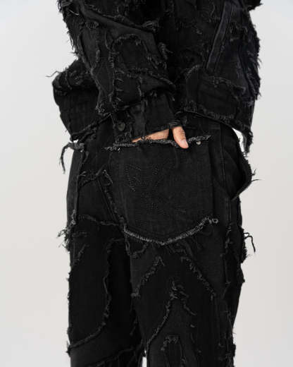 - Distressed patchwork denim pants