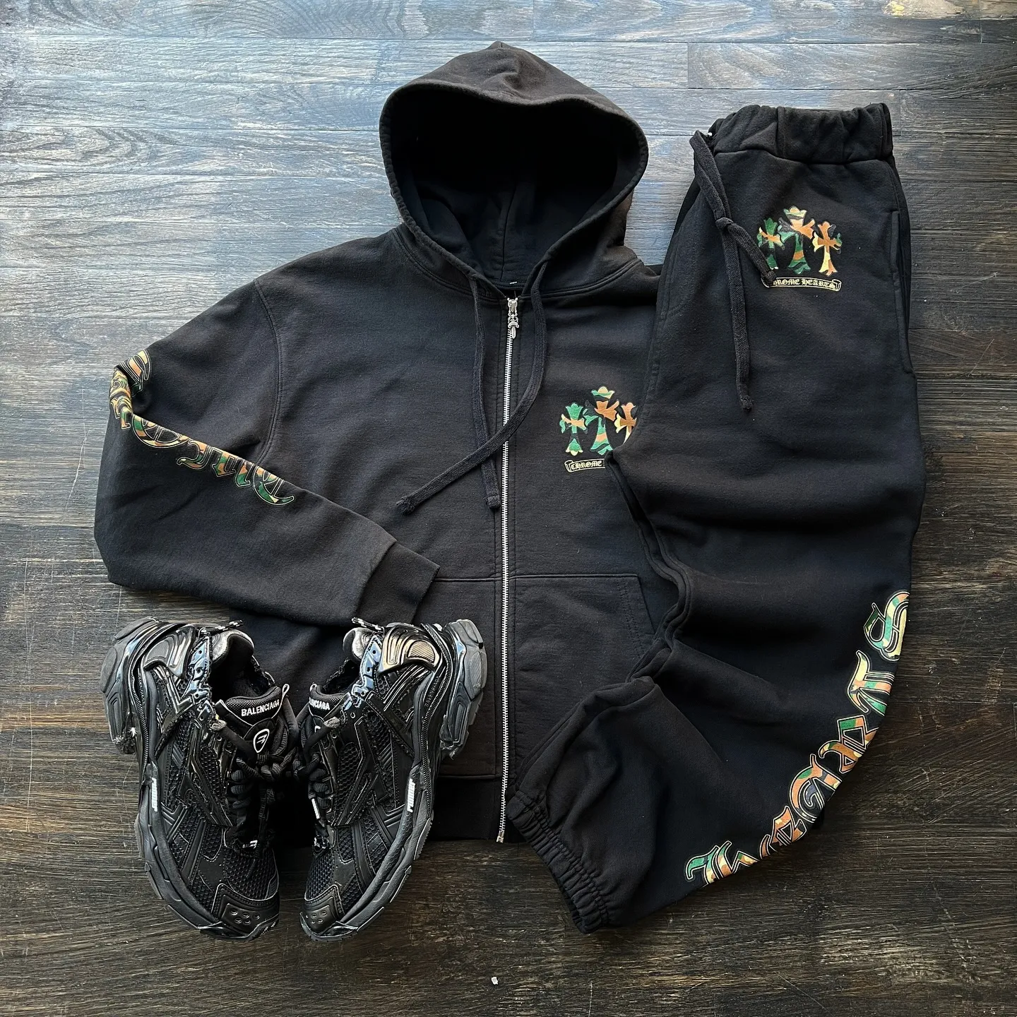 Vintage Cross Zip Hoodie Set