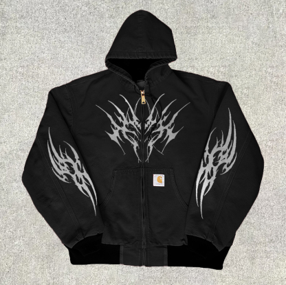y2k pattern hooded fleece jacket